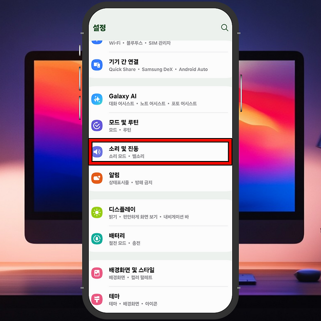 2) 소리 및 진동 → 음질 및 음향 효과 선택