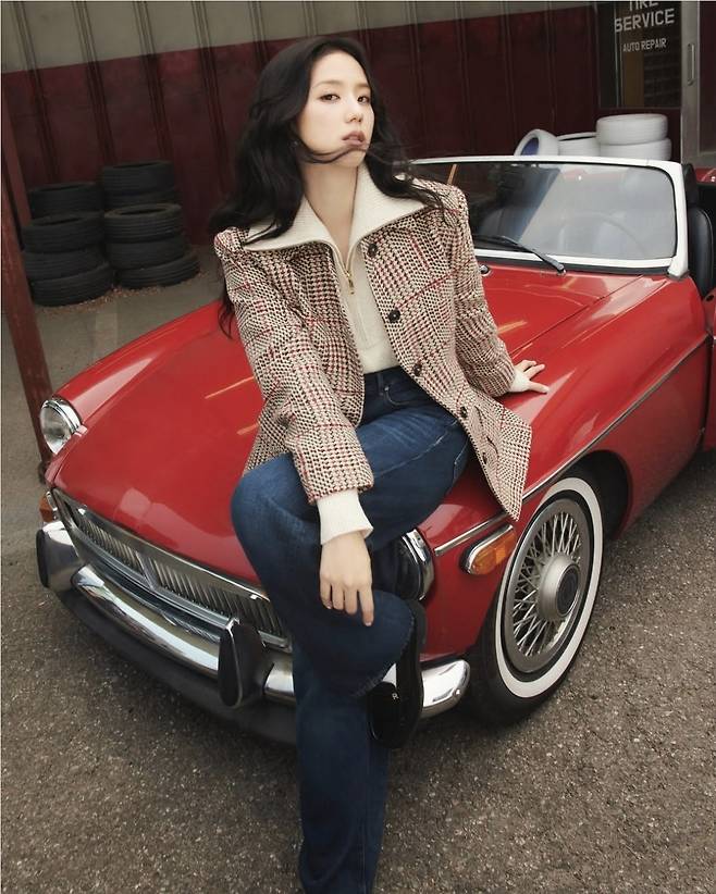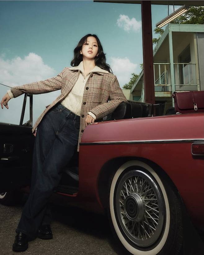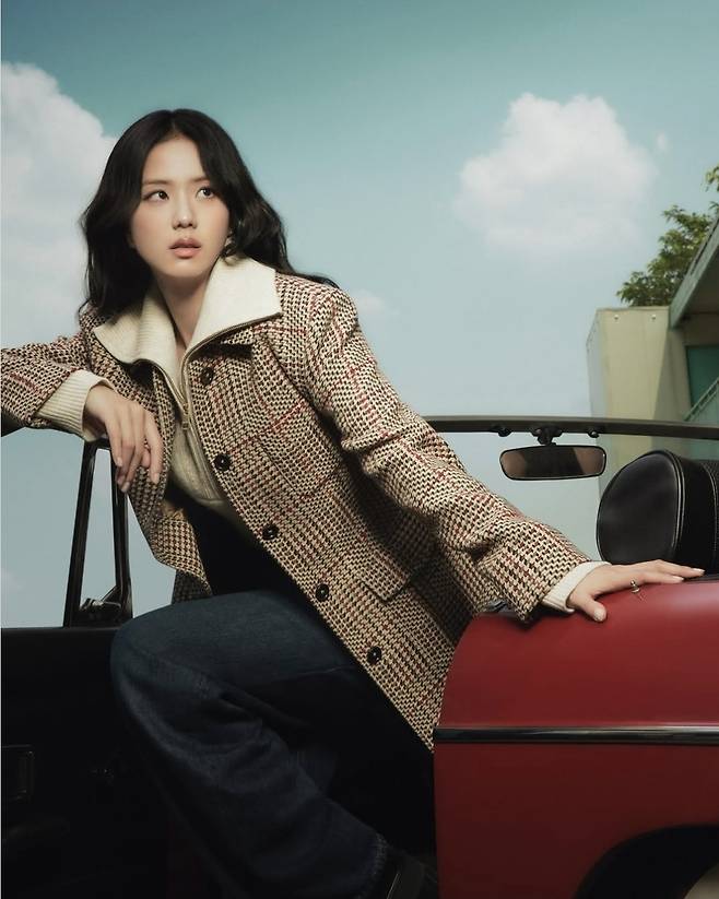 블랙핑크 지수가 고풍스러운 빈티지카와 함께 클래식한 매력을 가득 담은 스타일링을 선보였습니다.