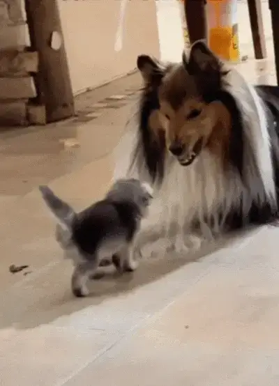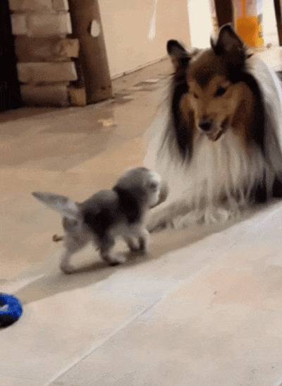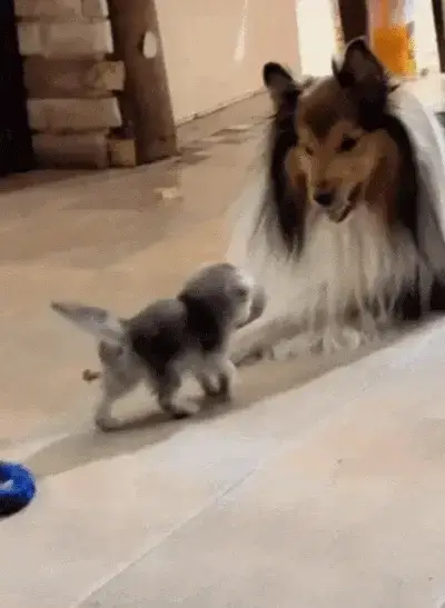 아기 고양이 뒤에 든든한 지원군이 있다는 사실을 이 개는 미처 몰랐던 겁니다.