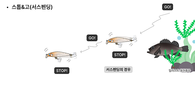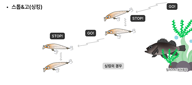 것만으로도 볼락이 달려드는 이상적인 수중 자세.
