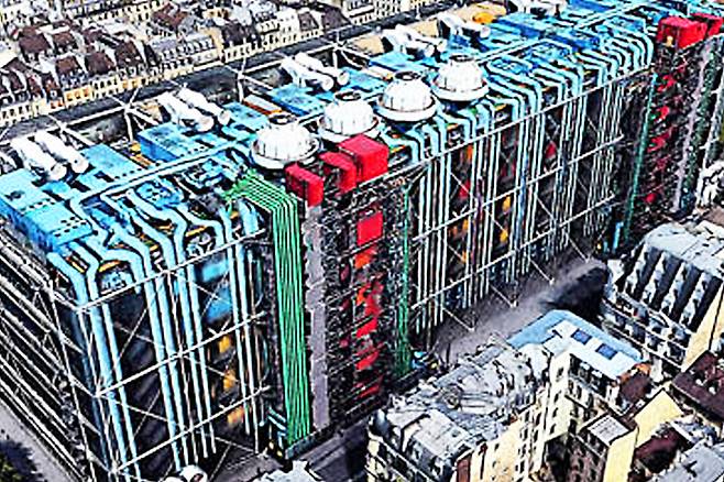 퐁피두 센터의 외관은 철골 및 냉난방, 배수 등의 설비 배관이 건물 바깥으로 드러나 있는데요. 파격적인 외관이 특징입니다.