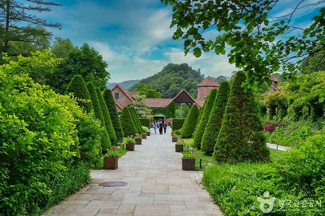 입구에 들어서자마자 마주하는 건 붉은 벽돌의 이탈리아풍 건물,그리고 그 앞으로 펼쳐지는 프렌치가든, 잉글리시보더가든, 하늘정원 등 유럽풍 정원들이에요.