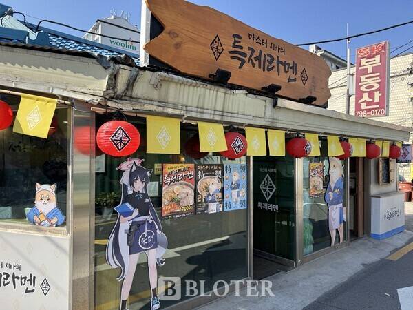 지난달 30일 서울 용산구. 경의중앙선과 용산삼각선이 70m 남짓의 거리를 두고 마주 보고 있는 골목에 파란 지붕의 단층짜리 라멘가게가 있다. 평일 오후임에도 대기줄이 길게 늘어선 이곳은 원래 밤노을이란 이름의 숙성 횟집으로 운영되는 곳이지만, ‘마스터 시바의 특제라멘’으로 간판을 바꿔 단 채 팝업스토어로 꾸며져 있었다.