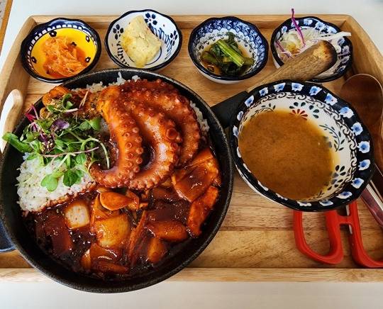 신선한 재료로 요리해 정갈한 한상차림을 맛볼 수 있는 수원 ‘행궁애월’. 시그니처 메뉴는 돌문어 덮밥으로 쫄깃한 돌문어를 매콤하게 양념하여 직화로 구워 올린 덮밥이다. 크고 통통한 문어가 올라간 덮밥은 비주얼부터 훌륭하다. 커다란 문어를 먹기 좋게 잘라서 함께 먹으면 되는데 쫄깃한 문어의 식감과 매콤한 소스의 조합이 아주 잘 어울린다. 밑반찬으로 나오는 갓김치와의 조합도 덮밥의 풍미를 더욱 살려주는 조합이라고. 돼지 앞다리살을 달콤 짭짤하게 양념해 직화로 구워 올린 간장 제육 덮밥도 인기 메뉴로 제대로 된 덮밥을 먹을 수 있다.