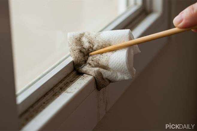 구석에 낀 찌든 때나 곰팡이는 칫솔과 식초물로 해결할 수 있다. 먼저 물 1컵에 식초 2스푼을 섞어 식초물을 만들어준다. 이후 식초물에 칫솔을 적셔서 창틀 구석구석을 문질러주자. 칫솔의 섬세한 모가 곰팡이나 끈적한 오염물을 효과적으로 제거해준다. 청소 후에는 마른 키친타월로 닦아 마무리하자. 손이 닿기 어려운 곳은 나무젓가락에 키친타월을 감아 닦아주면 손에 묻히지 않고도 위생적으로 청소할 수 있다.