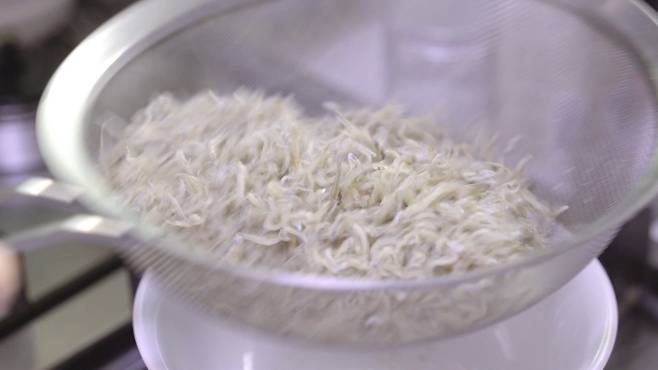 한번 볶은 잔멸치는 채에 받쳐 가루를 털어 주세요. 가루를 충분히 털어야 볶을 때 가루가 타지 않아 깔끔하게 드실 수 있답니다.