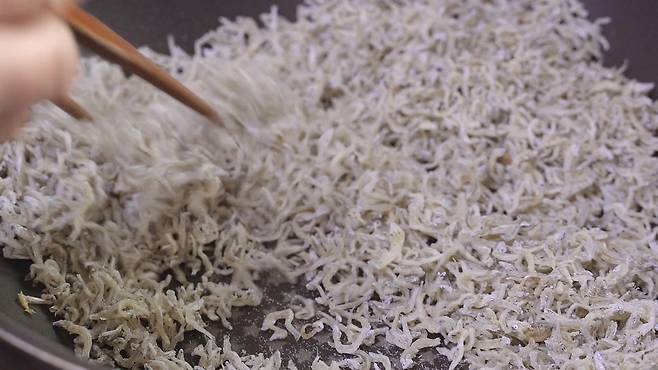 이제 멸치에 간이 배일 때까지 계속 저어가며 볶아 주세요.