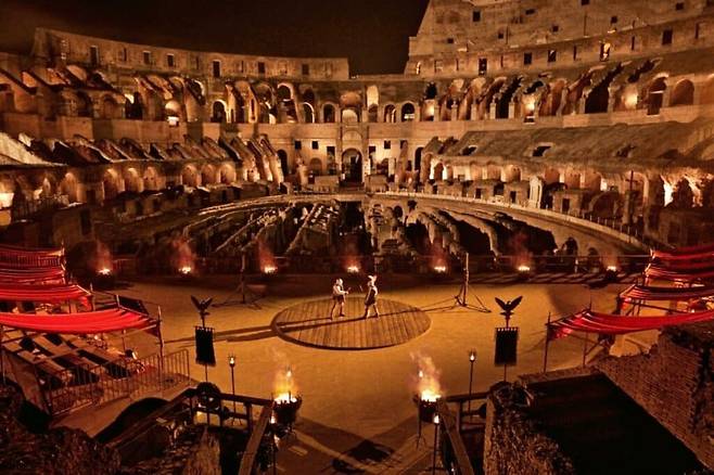 어둠이 내린 콜로세움 입구에서 체험객들은 후견인의 안내를 받아 고대 검투사들이 결투를 준비하던 지하 공간으로 향한다.