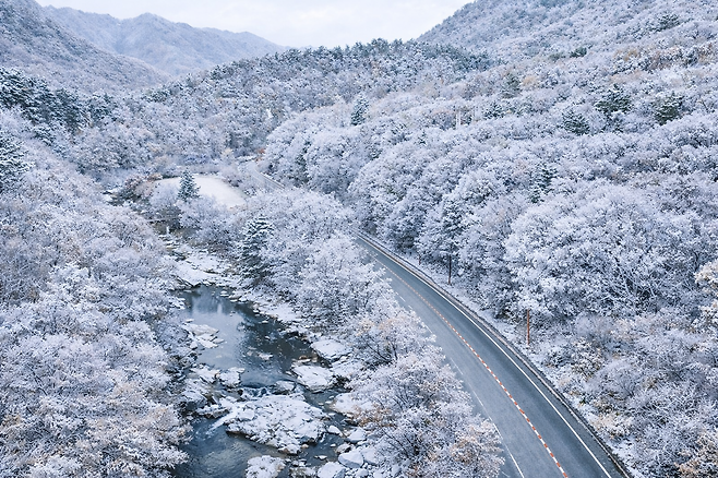 하얀 눈이 숲과 계곡을 덮는 1월의 무주. 이 계절에 가장 아름답게 완성되는 길이 있습니다. 전북 무주를 가로지르는 구천동 자연품길이 바로 그 주인공 입니다.