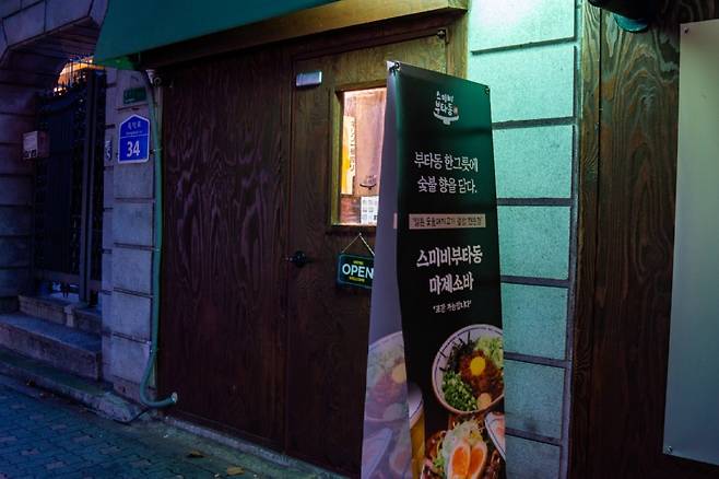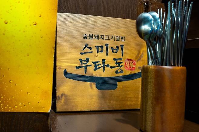 그런 부타동은 국내에서는 흔히 찾아보기 어렵다. 그런데 우연히 길을 걷다 흥미로운 공간을 발견했다. 합정역과 상수역 사이 어디쯤, 전면이 나무판으로 마감된 작은 가게. 이름하여 <스미비부타동>.