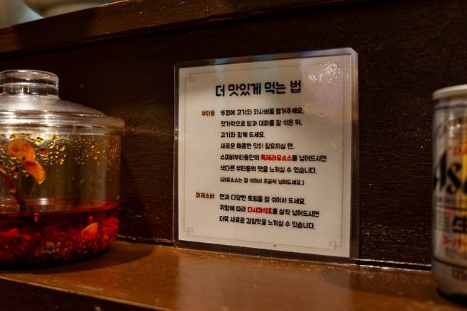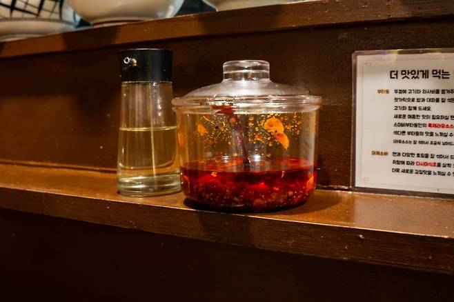 가게 안이 들여다보이지 않아 처음엔 문을 열기 조금 망설여지지만, 안으로 들어서면 마치 일본의 어느 뒷골목 식당에 들어온 듯한 레트로한 분위기가 펼쳐진다. 가게 안은 간장 양념 특유의 진득한 향으로 가득하다.