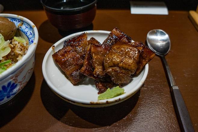 전체적으로 단짠의 조화가 인상적이다. 처음엔 양이 조금 적어 보이지만, 먹다 보면 의외로 포만감이 꽤 있다. 숯불 향도 고기의 풍미를 더해준다. 다만 개인적으로는 ‘단짠’과 돼지고기의 조합이 생각보다 쉽지 않다는 걸 새삼 느꼈다. 또, 일본식 간장이 우리와 쓰는 방식과 많이 다르다는 점도 흥미로웠다.