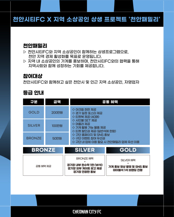 천안시티FC, 지역 소상공인 상생 파트너 '천안패밀리' 모집
