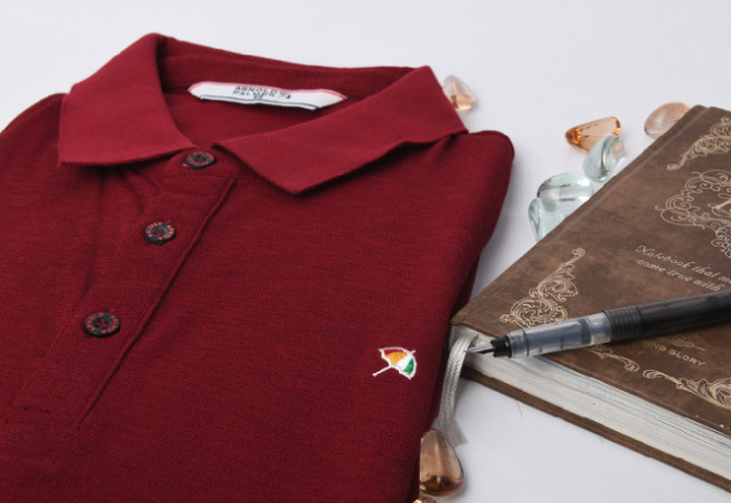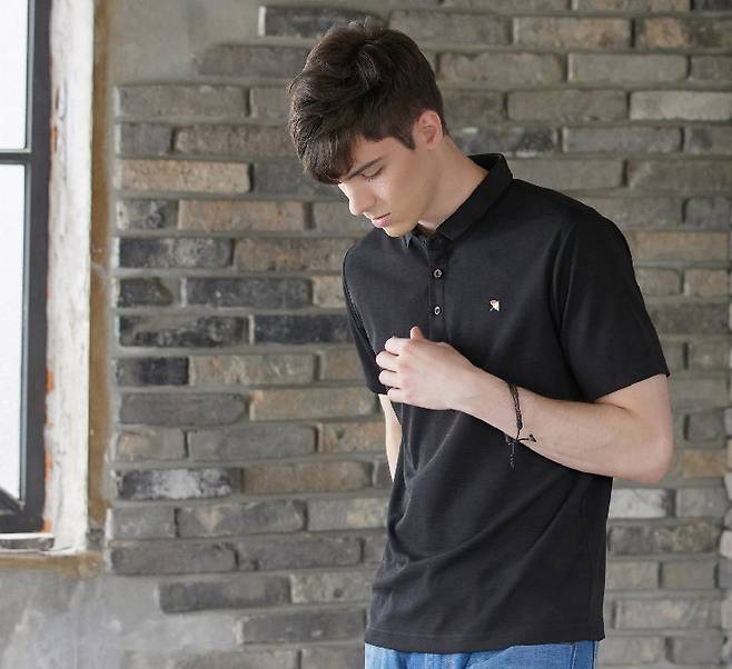 기본 카라 티셔츠에 포인트를 더하며