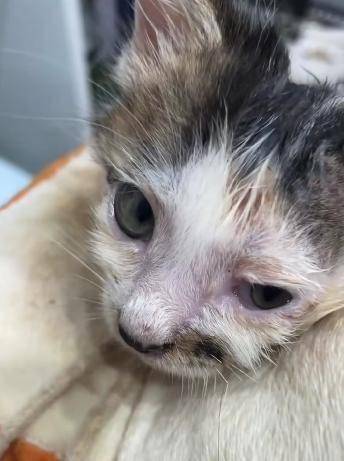 당시 아기 고양이는 무척 허약했고, 주인이 오랫동안 기다려도 엄마 고양이가 나타나지 않자 혼자 살아남기 어려울 것 같아 집으로 데려왔습니다.