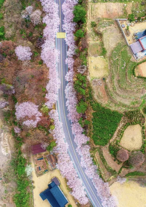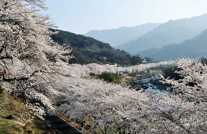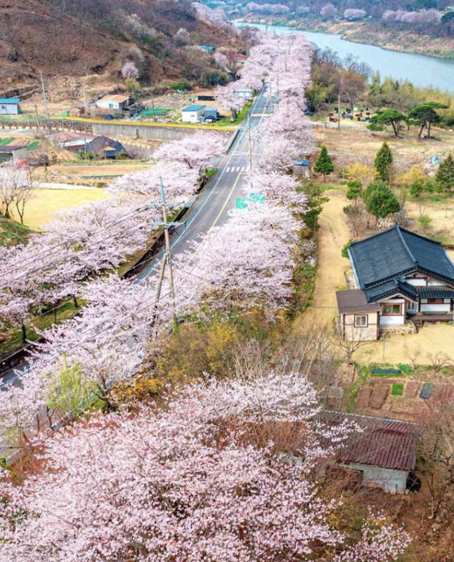 환상적인 벚꽃비: 바람이 불 때마다 수만 개의 꽃잎이 계곡물 위로 떨어지는 벚꽃비 현상은 이곳에서만 느낄 수 있는 영화 같은 순간입니다.