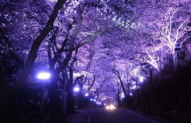 로맨틱한 밤의 정취: 야간에는 화려한 고보조명이 설치되어 밤하늘을 수놓는 벚꽃을 더욱 입체적이고 몽환적으로 감상할 수 있습니다.