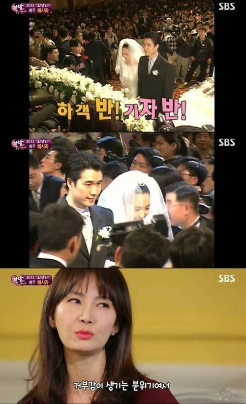 채시라는 과거 자신의 결혼식 영상을 보며 "아직도 김태욱 씨는 결혼식 이야기하면 뒷목을 잡는다"며 "취재진들로 인산인해로 이뤄 친척들이 거의 입장하지 못했다"고 당시 상황을 설명했습니다.