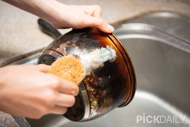 바쁜 아침, 후라이팬을 꺼내려다 바닥에 시커멓게 눌어붙은 그을음을 보면 청소할 엄두가 나지 않는다.