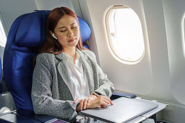 여행지에 낮에 도착한다면 비행기 안에서 충분한 수면을 취하는 것이 좋습니다. 도착 후에는 낮잠을 자지 말고 바깥에서 햇볕을 충분히 쬐어 수면 호르몬인 멜라토닌 분비를 조절해주도록 합니다. 만약 도착 시간이 밤이라면 비행기에서 2시간 이상 자지 않도록 합니다.