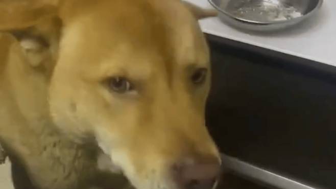 그러던 어느 순간, 이 강아지가 놀라운 아이디어를 떠올렸습니다! 무거운 밥그릇을 입에 물고 테이블 옆으로 조심스럽게 가져다 놓은 뒤, 자고 있는 주인을 향해 '낑낑' 소리로 깨웠습니다.