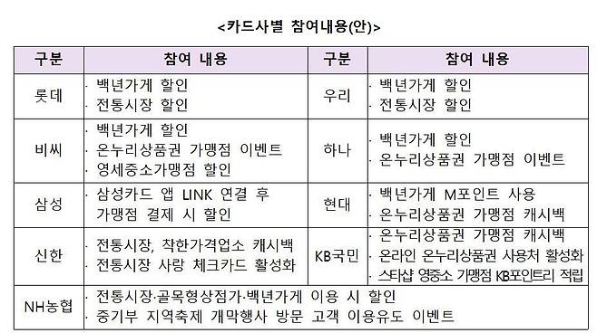 카드 업계는 전통시장 소비 진작을 위한 특화 카드 신규 출시와 마케팅 프로모션도 추진한다.