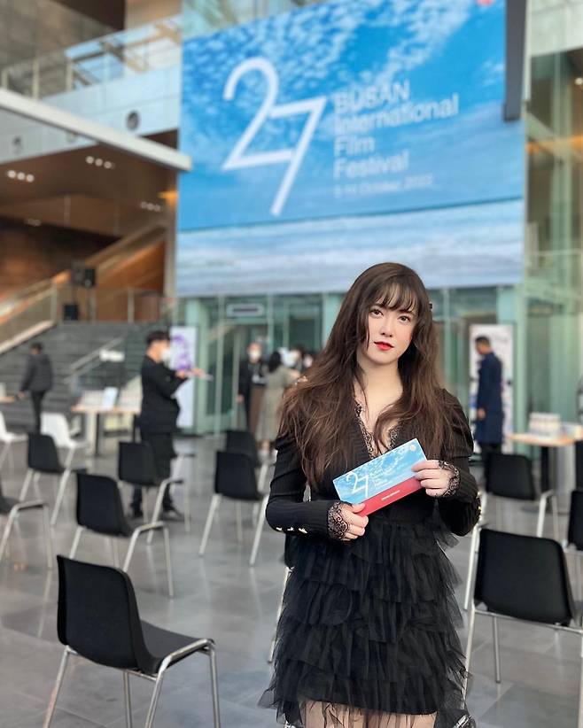 부산국제영화제 현장에서 구혜선은 블랙 시스루 드레스를 선택했다. 레이스와 프릴이 더해진 디자인이 우아하면서도 고혹적인 무드를 강조한다. 긴 머리와 레드 립 메이크업이 포인트가 되어, 행사장 분위기에 어울리는 세련된 공식석상 패션을 완성했다