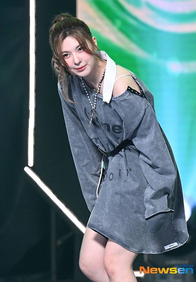 엔믹스 배이가 3월 29일 오후 경기도 고양시 일산동구 장항동 MBC 드림센터에서 열린 MBC M ‘쇼 챔피언’ 에서 무대를 펼친 후 인사를 하고 있다.