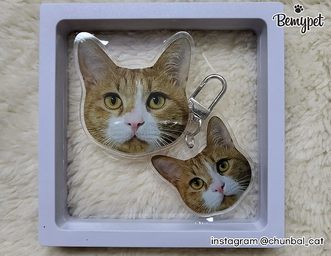 고양이 키링은 아크릴 소재로 만드는 경우가 많은데, 티셔츠 주문 제작하는 방법과 비슷합니다.
