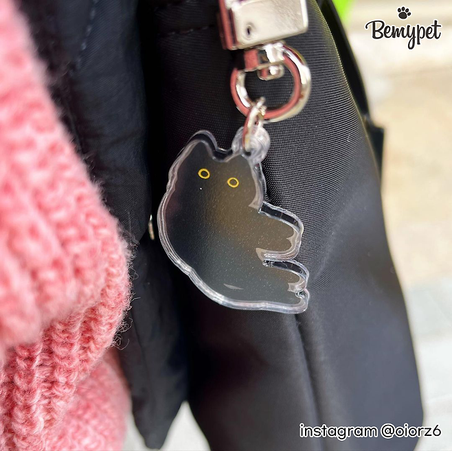 투명한 아크릴에 귀여운 고양이 그림이 그려진 키링 제품이에요. 파우치나 무선 이어폰 케이스, 가방, 자동차 키 등에 걸 수 있어 활용도가 높답니다.