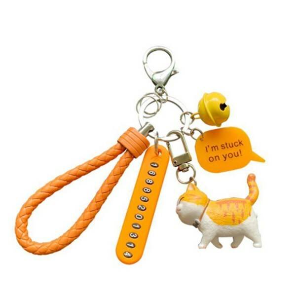 휴대폰 번호를 붙여둘 수 있는 번호판도 함께 들어있는 고양이 키링이에요. O 링으로 되어있어 자동차 키 외에도 키링을 더 달 수 있어 편리하답니다.