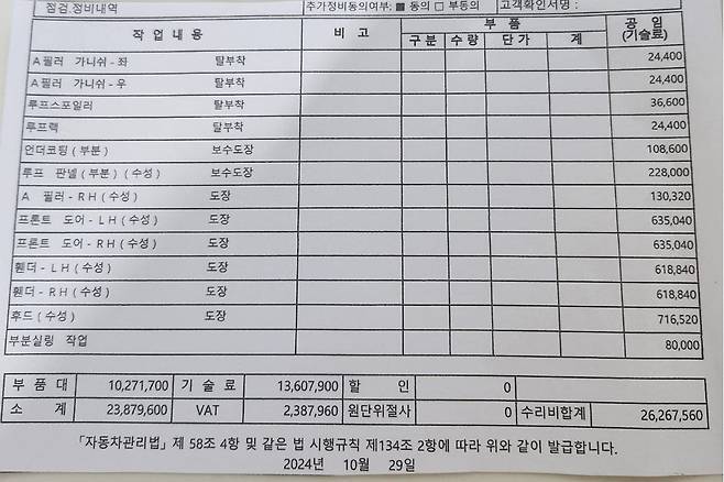 일각에서는 “국산 부품을 사용하면 되지 않느냐"라는 시각도 있지만, 현실은 그렇게 간단하지 않다. 각 브랜드는 자국 내 생산 부품도 일정 수준 존재하긴 하지만 전체 수요를 감당하기에는 역부족이며, 특정 차량 모델이나 부품은 수입에 의존할 수밖에 없는 구조다. 그리고 자동차는 수리비 자체가 비싼 재화에 속하기 때문에 문제는 더욱 커질 것으로 보인다. 지금도 비싸서 수리를 못 하고 있는데, 수리비가 더 비싸지면 유지조차 하지 못할 가능성도 크다.