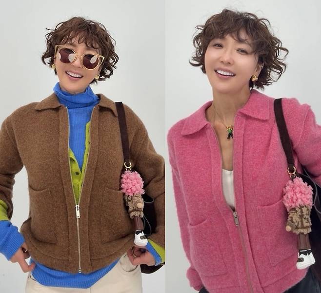 공개한 사진에서 최은경은 니트 카디건과 집업 재킷, 후드 퍼 베스트, 후드 니트 스웨터, 후드 니트 집업 카디건 등이 핑크, 그린, 블루 등을 포인트 컬러로 활용한 겨울룩으로 감각적인 믹스앤매치 스타일을 완성했다.