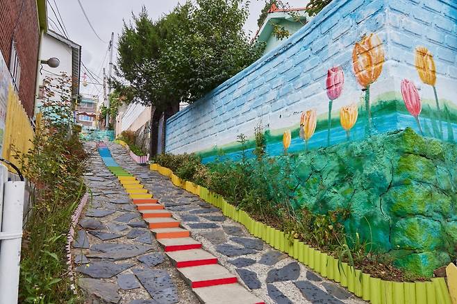 차이나타운 옆에는 인천 데이트 코스로 상당히 매력적인 송월동 동화마을이 숨어있습니다. 동화 속 세상처럼 아기자기한 분위기를 자랑하는 인천 명소로, 마을 곳곳에 다양한 벽화와 조형물들이 그려져 있어, 마치 동화책을 넘기는 듯한 기분을 느낄 수 있죠.