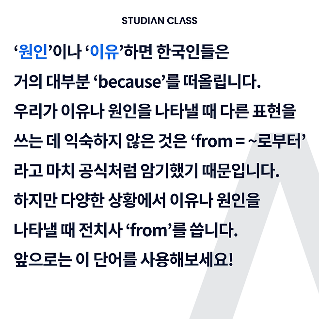 '원인, 이유'를 표현할 때, 영어로 어떻게 말할까? 1분 회화 공부