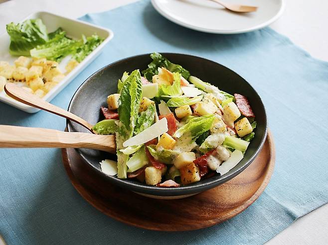 첫 번째, 시저 드레싱부드럽고 고소한 맛으로 사랑받는 시저 드레싱은 사실 칼로리 폭탄입니다. 주로 마요네즈, 파르미지아노 치즈, 크림, 오일이 기본 재료로 들어가 있기 때문에 한 스푼만으로도 지방과 칼로리가 급격히 올라갑니다. 시저 샐러드는 샐러드답지 않게 한 끼 식사 수준의 칼로리를 가질 수 있어 주의해야 합니다.
