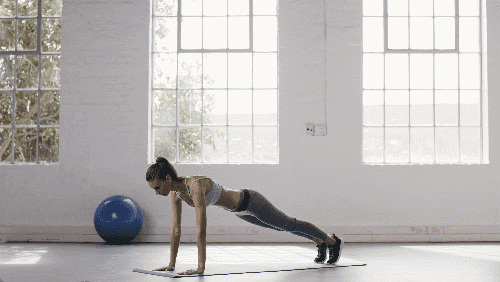 매트에 엎드려 플랭크 기본자세를 취하고, 팔꿈치는 완전히 펴서 어깨 아래에 손이 오도록 정렬합니다. 복부에 힘을 주며 몸을 일직선으로 유지한 상태에서 왼쪽 다리를 공중으로 들어 올렸다가 내립니다.