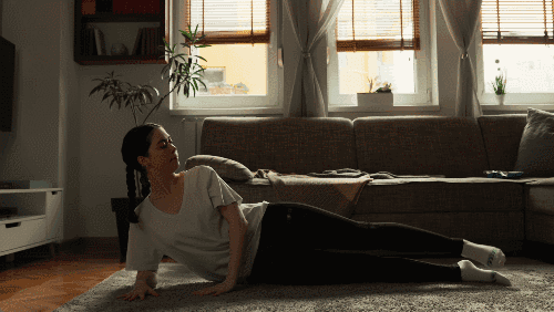 바닥에 네발기기 자세로 엎드려 손은 어깨 아래, 무릎은 엉덩이 아래에 위치시킵니다. 왼쪽 다리를 뒤로 곧게 뻗으며 엉덩이에 힘을 주어 조여줍니다. 다리를 다시 원래 위치로 가져오면서 복부에 힘을 주고 코어를 안정시킵니다.