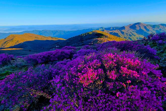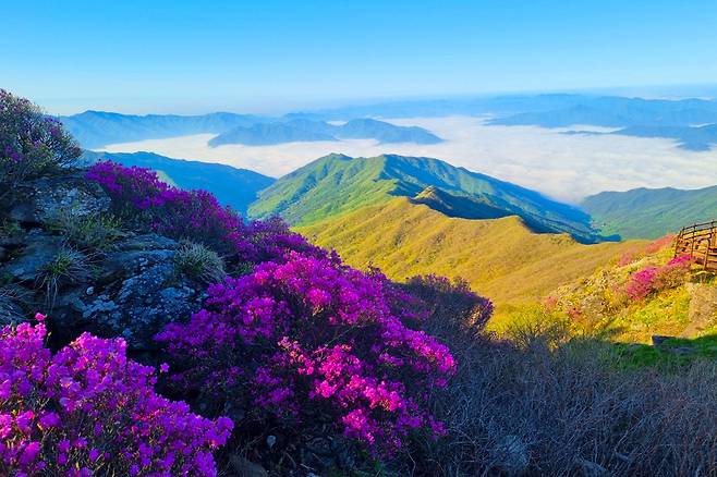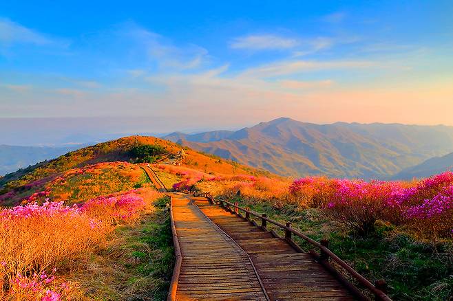 다음 주말을 노려 방문한다면 분홍빛으로 물든 지리산의 환상적인 풍경을 눈과 마음에 담을 수 있다.