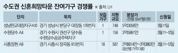 여기에 신혼희망타운은 전용 60㎡형 미만 소형 가구로 구성됐고, 분양가 3억7900만 원 이상인 주택 매도 때 대출 비율 등에 따라 최소 10%에서 최대 60%의 수익을 대출기관과 나눠야 해 선호도가 높지 않았다. 하지만 이런 조건에도 입지와 가격 경쟁력을 갖춘 곳은 실수요자 선택이 이어진 것이다.