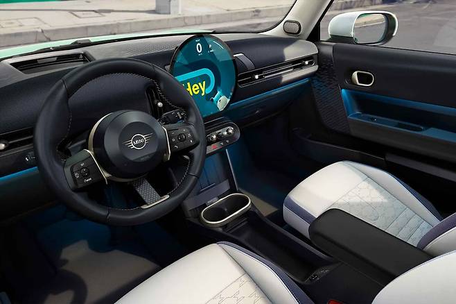 뉴 MINI 쿠퍼 C 3-도어는 세계 최초로 삼성 디스플레이와 협업해 개발한 240mm 직경의 원형 OLED 디스플레이를 기본으로 탑재했다.