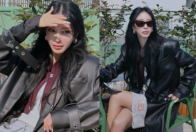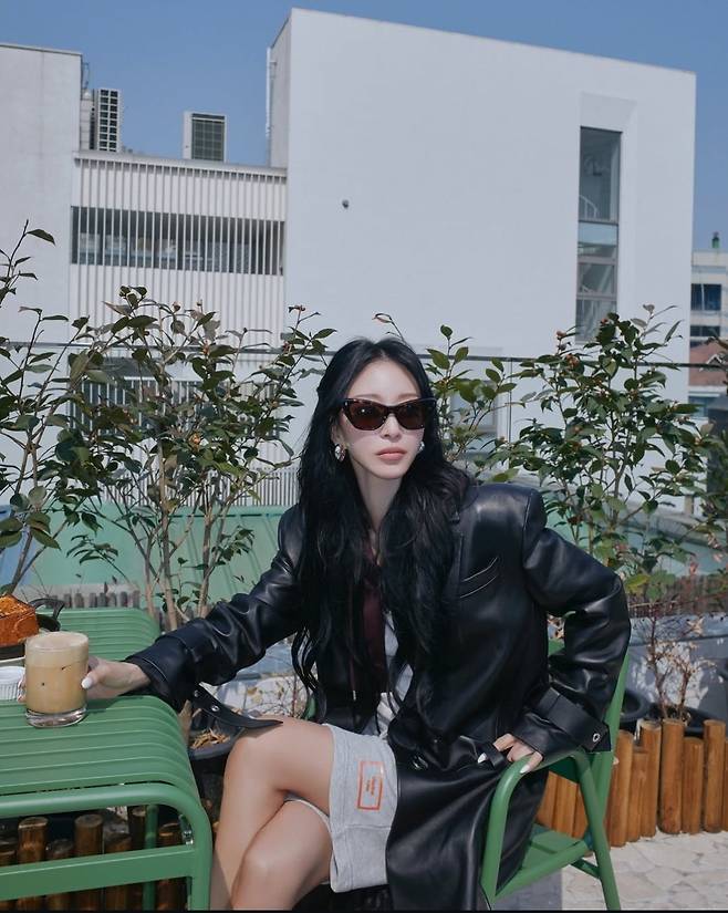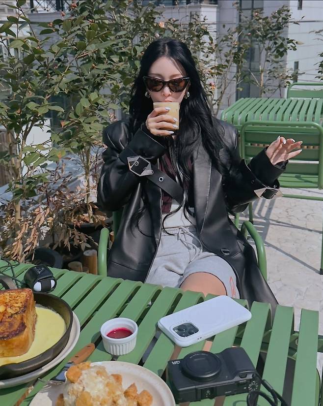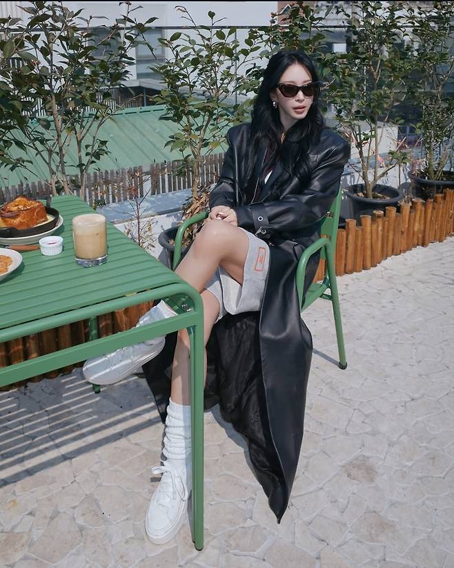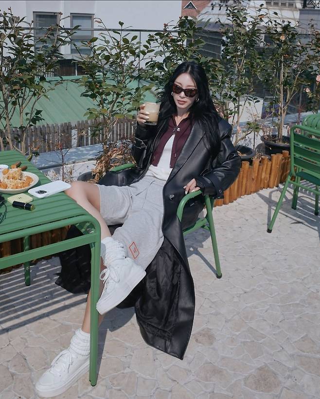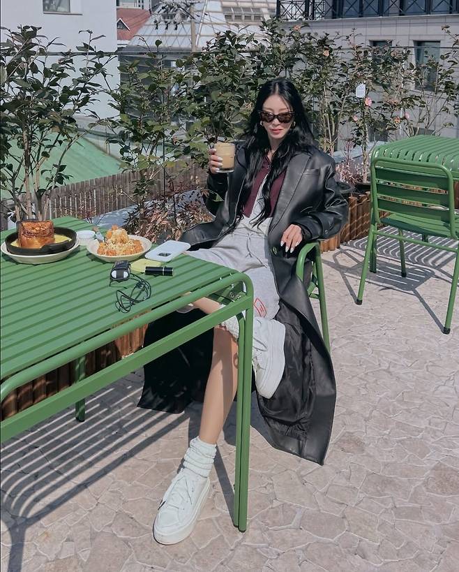 특히 한예슬은 오버핏 블랙 가죽 롱코트를 중심으로 여유롭고도 스타일리시한 테라스룩을 완성했습니다.