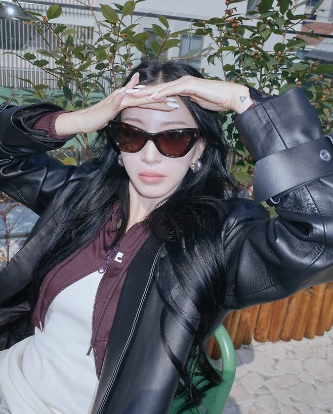 또렷한 고양이형 선글라스와 매끄러운 블랙 웨이브 헤어는 마치 패션 화보 속 한 장면처럼 완성도를 높였습니다.