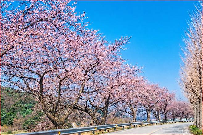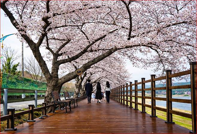 그중에서도 울진을 상징하는 명승 제15호 ‘성류굴’ 앞 산책로는 하늘을 뒤덮는 화려한 꽃 터널과 강물 위로 부서지는 햇살이 어우러져, 봄날의 가장 극적인 장면을 선사합니다.