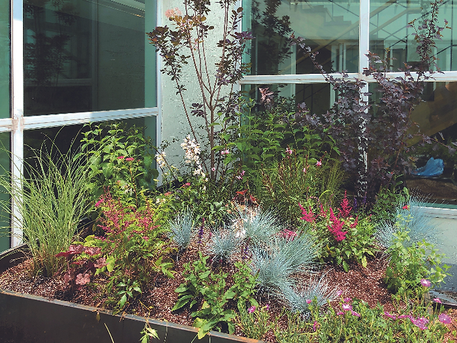 앞에서 언급했듯이 옥상 정원은 햇빛과 바람에 강한 식물을 선택하는 것이 좋다. 그렇다고 모두 돌나물이나 다육식물 같은 초화만 심으라는 것은 절대 아니다. 다년생 식물을 식재해 환경에 적응하고 정착할 수 있도록 가꾸는 재미도 있다. 사계절 푸른 상록수도 좋은 선택이다. 대체로 병충해에 강하기에 관리가 쉬울 뿐만 아니라 시각적으로도 매력 있고 겨울에도 아름다운 모습을 뽐낸다.