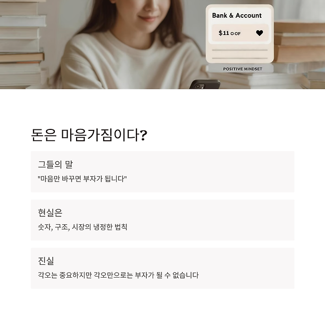 마음가짐이 중요하다는 건 부정할 수 없습니다.하지만 그것만으로는 아무것도 바뀌지 않습니다.현실은 숫자고, 시스템이고, 시장입니다. 마음으로 되는 건 ‘각오’뿐입니다.