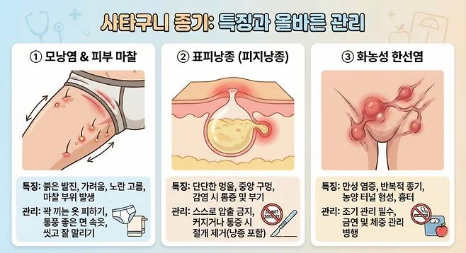 일상 속에서 갑자기 사타구니 부위에 불편함이 느껴진다면 누구나 당황스럽기 마련입니다. 민감한 부위이다 보니 주변에 쉽게 말하기 어렵지만, 방치할 경우 일상생활에 지장을 줄 수 있어 주의가 필요합니다. 오늘은 사타구니 부위의 통증과 종기가 생기는 이유, 그리고 각 상황에 맞는 관리 방법을 살펴보겠습니다.