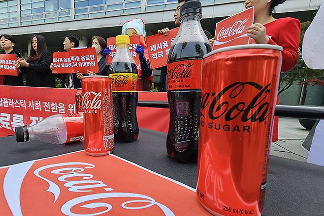 이어 시민연대는 “국내 코카콜라 사의 경우 글로벌 본사 정책과 다르게 재사용 병 대신 캔 콜라를 들이면 식당 내 음료 판매량이 높아진다는 홍보물을 배포하는 등, 적극적으로 역행하는 모습을 보였다”며 문제점을 지적했다.