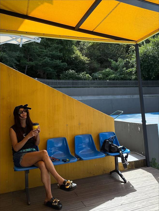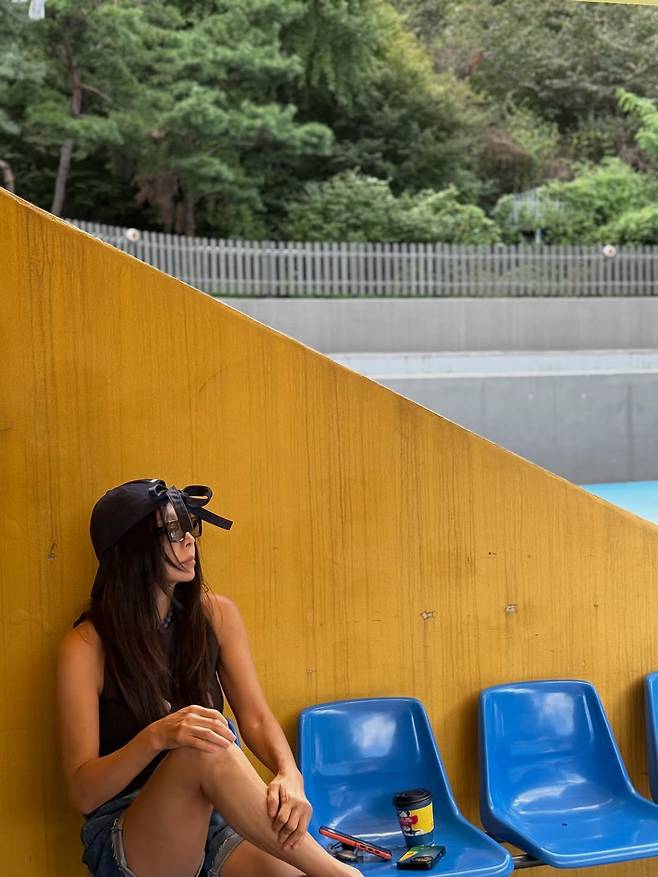 이날 황신혜는 데님 숏팬츠에 민소매 티셔츠를 매치해 쿨하고 편안한 스타일을 선보였습니다.