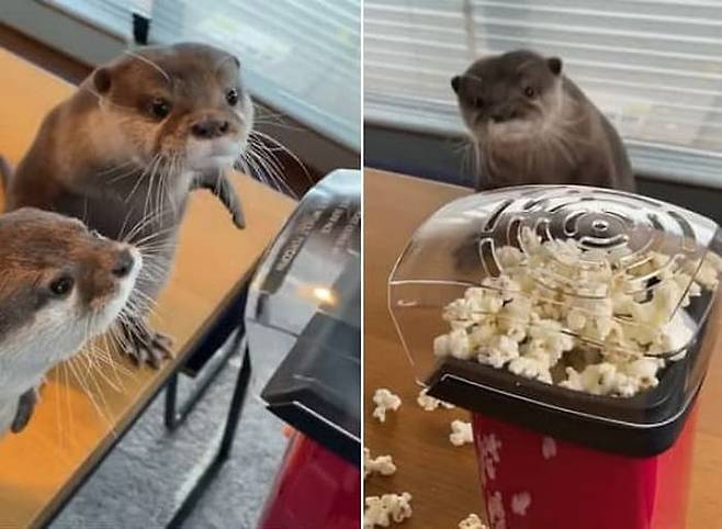 사연은 이렇습니다. 코타로(Kotaro)와 하나(Hana)라는 이름을 가진 수달을 키우는 집사는 SNS를 통해 팝콘 기계를 본 수달들의 반응이 담긴 영상을 찍어 올렸죠.